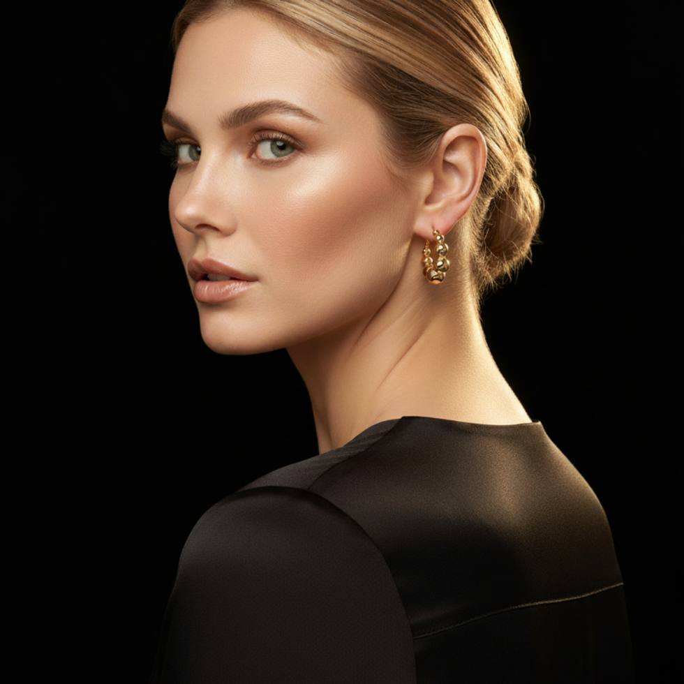 Bu premium halka küpe, sıralanmış halkalarla oluşan sallantılı tasarımı ve modern detaylarıyla her sezonun favorileri arasında yerini alıyor.