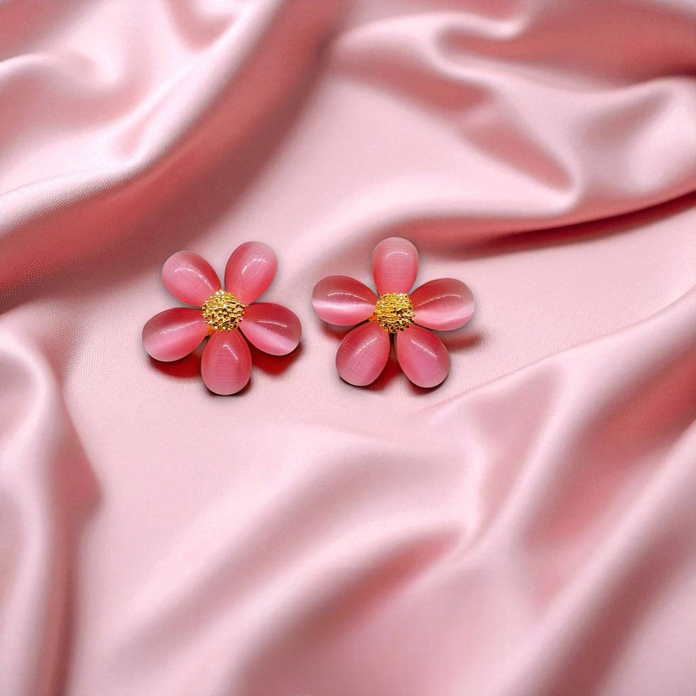 Bu premium küpe, pembe papatya tasarımı ve modern detaylarıyla her sezonun favorileri arasında yerini alıyor.