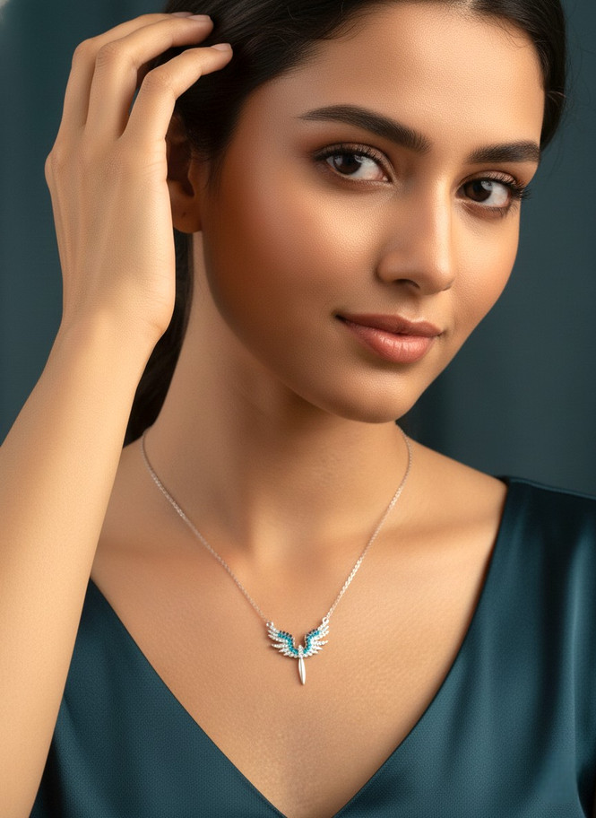- Zirkon taşlarla süslenmiş anka kuşu kolye gümüş rengiyle göz kamaştırıcı bir parıltı kazandırırken, yerleşimi şık bir odak noktası sunuyor.