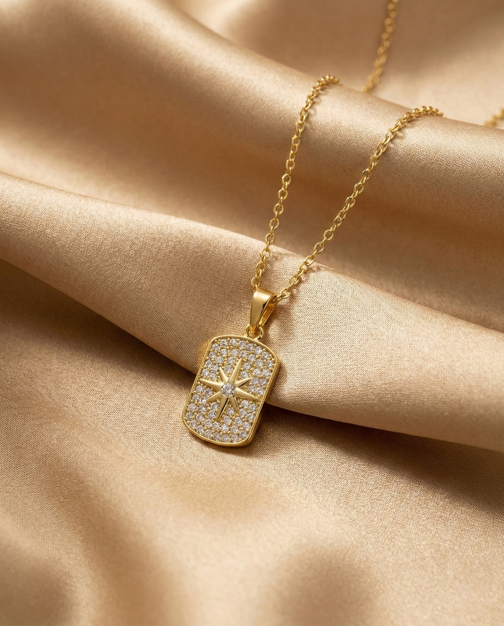Zirkon Taşlı Kutup Yıldızı Altın Renk Kolye 925 Ayar Gümüş